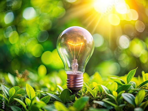 Eco-Friendly LED Bulb Bokeh Photography: Energy Efficient Lighting, Sustainable Design, Green Technology
