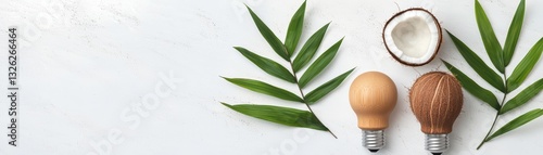 sustainable, material, design, concept, light, bulb, eco, energy, nature, green, innovation, wood, coconut, fiber, style, decor, technology, environment, home, product, creative, modern, aesthetic, artistry, photo, composition, minimalism, workshop, space, arrangement, fresh, tropical, natural, resource, illumination