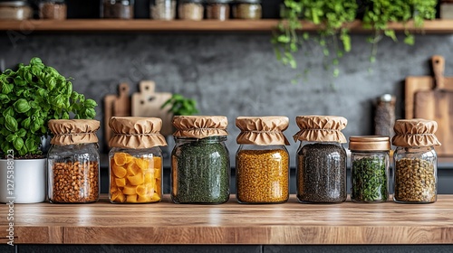 kitchen, modern, eco, friendly, food, cardboard box, jar, herb, grain, legume, storage, countertop, design, interior, decor, plant, natural, rustic, organisation, simplicity, healthy, vegetarian, vegan, fresh, colourful, home, cooking, culinary, ingredient, lifestyle, sustainable, environment, aesthetic, utensil, wood, minimalism, green, freshness, nature, organic, health, beauty, arrangement, presentation, favor