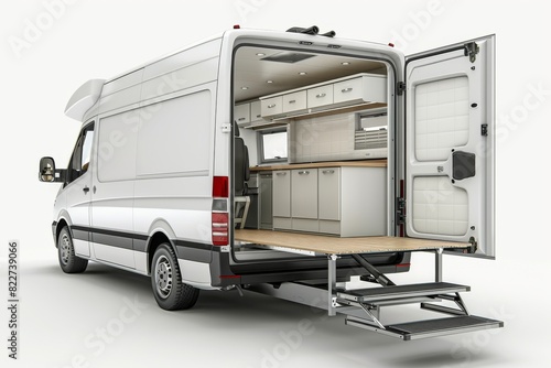 Eco-friendly truck loaded with boxes and plants, showcasing a clean, modern, and organized setup for sustainable moving and delivery services.