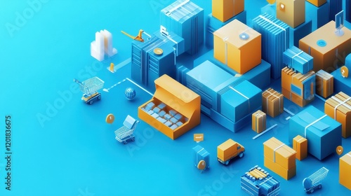 E-commerce logistics optimization flat design front view tech innovation 3D render complementary color scheme