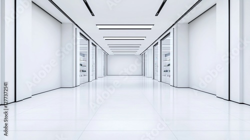 E-commerce Platforms Concepts. Minimalist white corridor with modern lighting and clean surfaces.