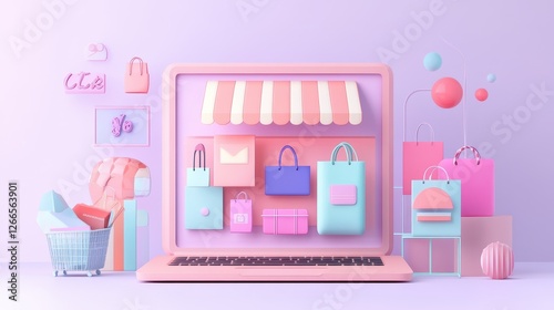 e-business, website, flat, design, front, view, user, interface, theme, three-dimensional, render, coloured, pastel, shopping, online, store, digital, web, layout, navigation, product, cart, purchase, checkout, payment, screen, desktop, mobile, responsive, modern, minimal, trendy, marketplace, retail, commerce, technology, cyberspace, browsing, category, catalog, virtual, interactive, buttons, search, bar, transaction