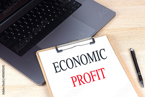 ECONOMIC PROFIT text on clipboard on laptop