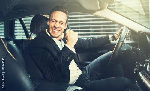 accomplishment, achievement, adult, automobile, businessman, businessperson, businessman, businessperson, car, caucasian, celebrate, city, commute, commuter, commuting, confident, copy space, driver, driving, ecstatic, excited, happy, lens flare, lifestyle, male, man, new car, on the go, 1, person, road, sitting, smiling, success, successful, traffic, transportation, traveling, vehicle, victory, white, window, winning, young