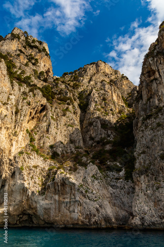 Edge of high cliff next to the sea at sunny day on Capri island