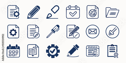 Edit & Modification Icon Set – Blue-Themed Vector Icons for Writing, Updating, and Document Tools