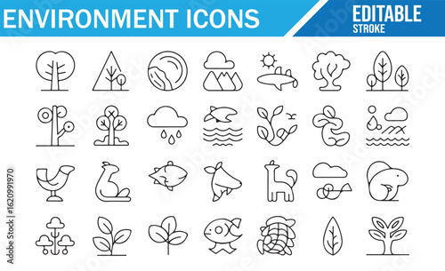 Editable Vector Icons for Trees, Animals, and Natural Resources