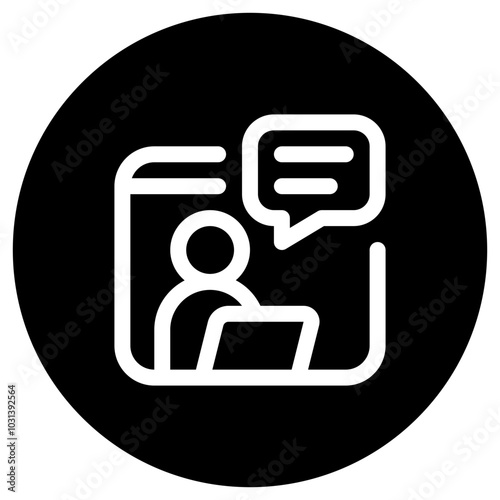 icon, remote, work, job, working, conference, meeting, online, chat, cyberspace, browser, podcast, telecommuting, virtual, flexible, office, team, telework, workspace, tool, communication, lifestyle, technology, productivity, trend, vector, line, outline, frame, container, circle, round, black, fill, solid, app, web, application, website, symbol, object, pictogram, illustration, white