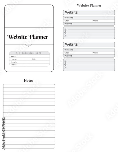 Editable Website Planner Planner Kdp Interior printable template Design.