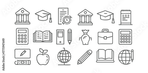 Education Icons Pack | School, Learning, and Study Vector Set | Minimal Line and Solid Education Symbols