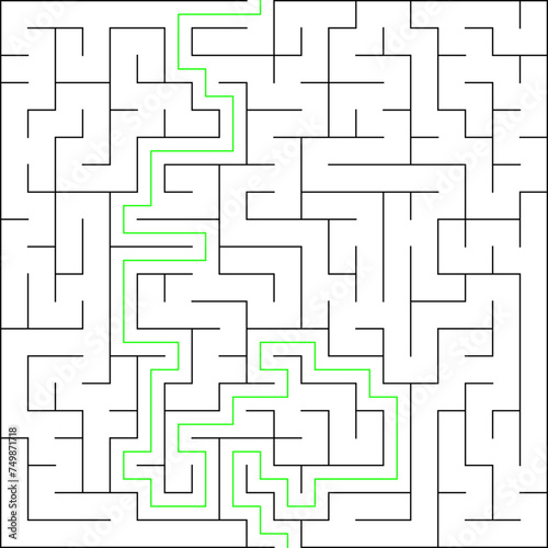 Education logic game labyrinth for kids. Find right way. Isolated simple square maze black line on white background. With the solution. Vector illustration.