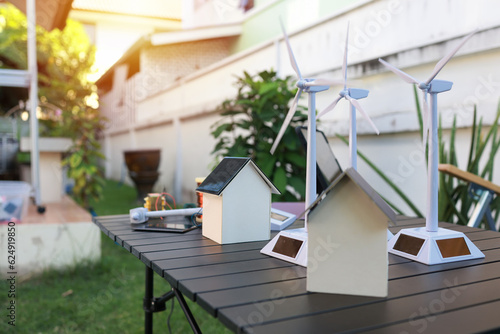 Education set of wind turbine and solar cell, green energy, and renewable energy concept