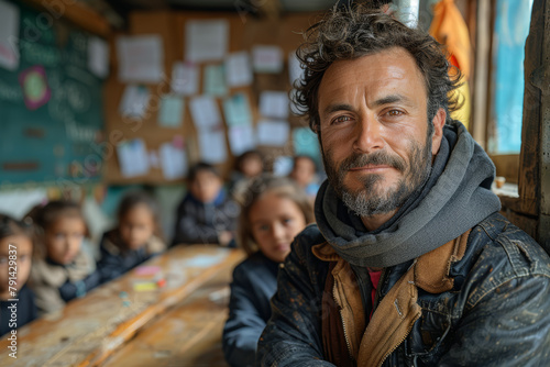 Educators implementing trauma-informed approaches in refugee education programs, addressing the psychosocial needs of displaced children. Concept of trauma-informed care. Generative Ai.