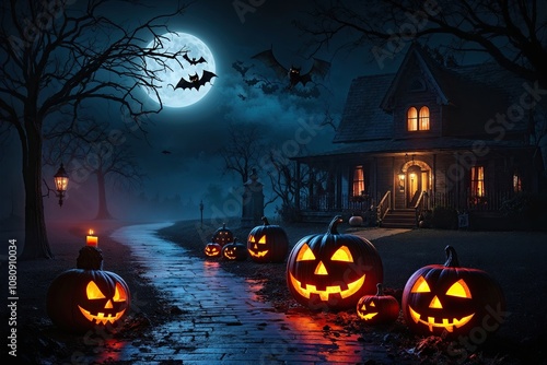 Eerie Midnight Halloween Scene with Spooky Ambiance and Dark Creative Imagination