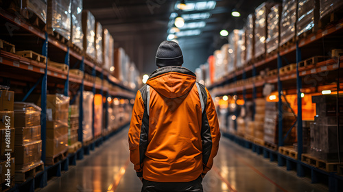Efficient Fulfillment Logistics: Inside a Retail Warehouse with a Worker in Vest.