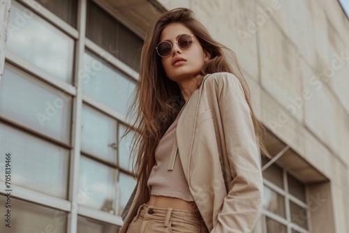 Effortlessly Fashionable: Girl Exuding Style In A Minimalist Beige Outfit