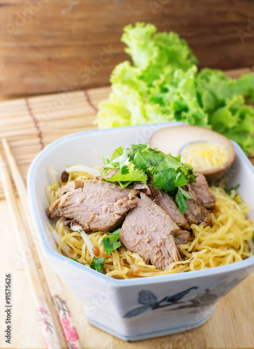 egg noodle with boiled duck in bowl