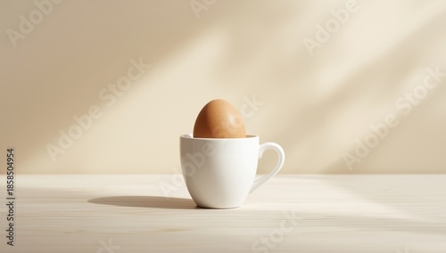 Eggs in a white cup highlighting nutritious breakfast, kitchen setting, protein-rich meal, International Nutrition Day