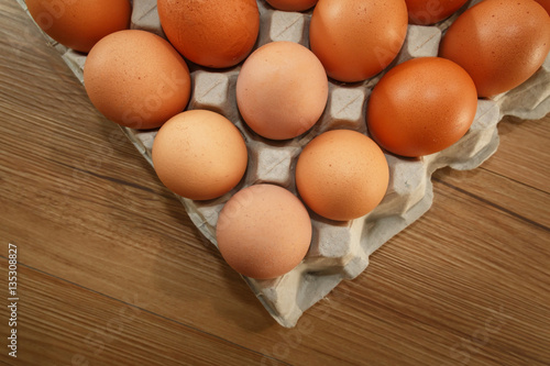 box, breakfast, brown, cardboard, chicken, closeup, container, eat, egg, farm, food, fresh, healthy, ingredient, market, natural, object, organic, package, paper, raw, row, table, tray, view, wooden