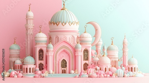 eid, ramadan, mosque, illustration, islamic, pastel, background, whimsical, colours, design, holiday, crescent, festive, art, serenity, spirituality, creativity, harmony, community, peace, joy, symbolism, ornament, vibrant, calmness, elegance, fantasy, gathering, prayer, worship, heritage, oneness, atmosphere, grace, charme, inspiration, allure, reflections, dreamlike, decorative, imagination, faith, element, bliss, enchanting, wish, wonder, expression, shape