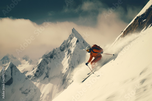 skiing, winter sports, departure, skier, alpine, mountain view, speed, avocation, adrenalin, winter landscape