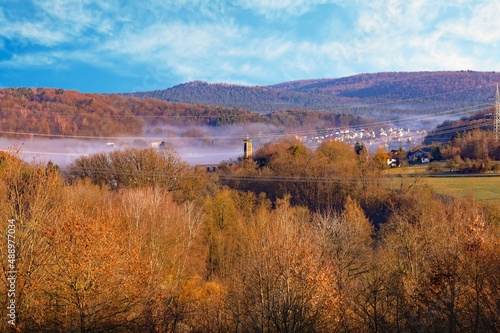 countryside, mountain, nature, heaven, autumn, tree, view, cloud, forest, grass, scenic, hill, panorama, outdoors, travel, wilderness, vale, green, fall, rock, land