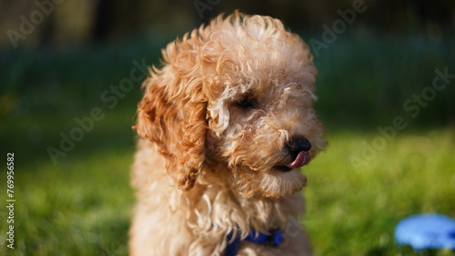 dog, puppy, poodle, pet, pretty, tongue, summer, curly, friendly, park, animal, portrait, young, doggy, little, apricot, fluffy