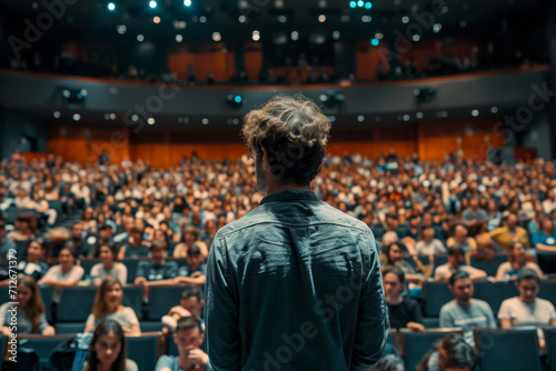 Ein Redner, der einen Vortrag vor einem Publikum in einem Auditorium hält