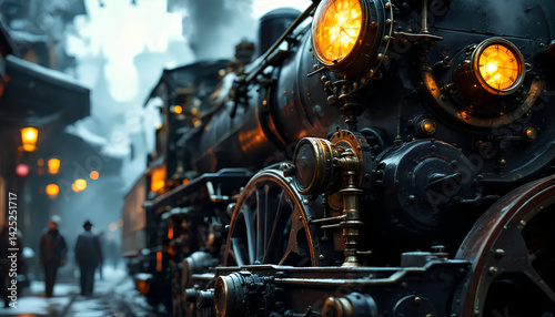 Eine detailreiche Nahaufnahme einer historischen Dampflokomotive