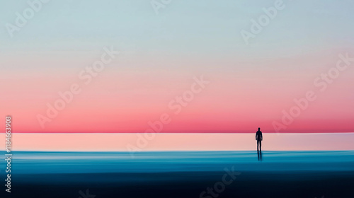 Einsamer Mensch in surrealem Landschaftsbild mit leuchtendem Himmel