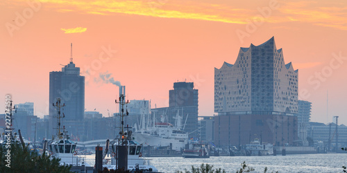 hamburg, autumn, elba, river, sunrise, morning, boat, daybreak, sky, yellow, orange, beautiful, dawn, daybreak, sunlight, red sky, ship, skyline, philharmonic, hall, orchestra, building, construction, tower, large, major, opera, house, music, city, port, harbor, harbor, architecture, famous, german, europa, sight, landmark, attraction, tour tourism, trip, journey, holiday, vacation