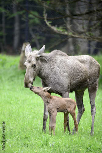 elk, cervid, northern europe, north america, female, family, ear, goatee, moose, artiodactyl, calf, mother, female, animal, nature, relation, young