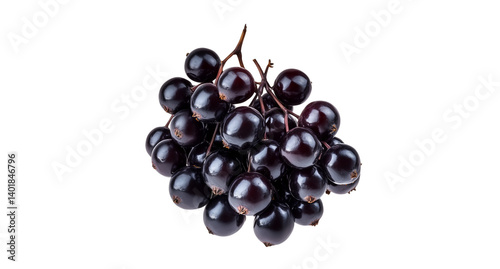 Elderberries with deep purple glossy skin in a cluster, ideal for syrup, tea packaging or immune health concepts, isolated on white transparent background PNG cutout Mockup template for artwork design