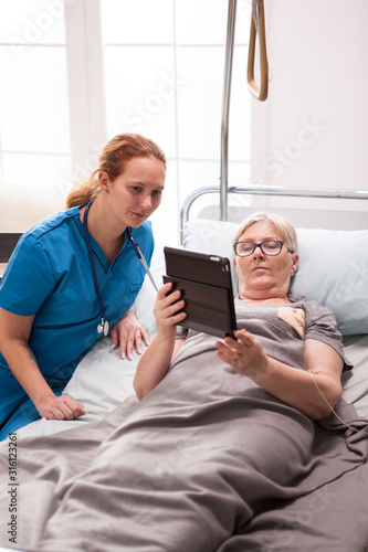 crutch, nursing home, couch, old, woman, tablet, computer, senior, young, nursing, lady, home, help, grandmother, technology, person, retired, elderly, assistance, assistant, health, happy, patient, people, caregiver, care, smile, visit, wi-fi