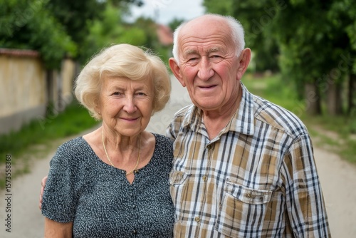 elderly, caucasian, couple, outdoors, smiling, mature, male, female, nature, park, happiness, together, plaid, shirt, blouse, path, tree, greenery, summer, bonding, love, affection, portrait, serene, joyful, senior, lifestyle, companionship, vitality, relaxing, peaceful, content, stroll, ageing, memory, life events, wisdom, hair, wrinkle, expression, intimacy, connection, casual attire, day, relationship