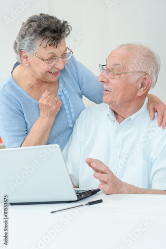 elderly couple in front of a laptop