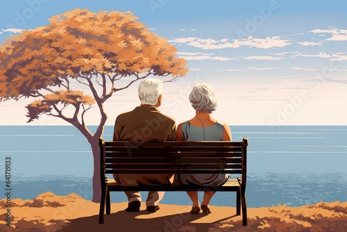 elderly, couple, park bench, horizon, love, life, sitting, serenity, togetherness, affection, bond, human relationships, companionship, gazing, peaceful, tranquil, contentment, connection, joy, sharing, hugs, life events, lifelong, happiness, cherish, memory, timeless, intimacy, emotional, senior, affectionate, bonding, sentiment, blissful, romance, heartfelt, admiration, wisdom, mutual, reverie, longevity, background, illustration