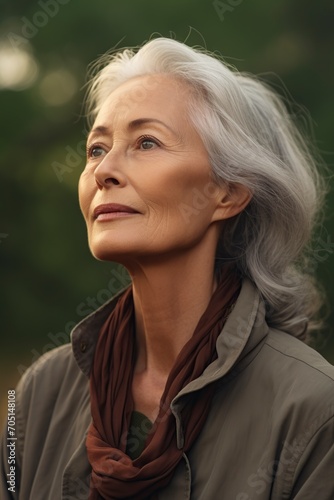 elderly lady in full contemplation of the landscape that surrounds her, thinking