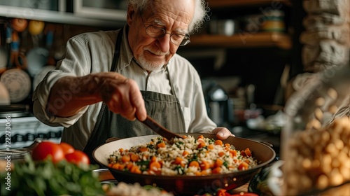 1, man, elderly, older, cooking, caucasian, beard, white, hair, goggles, 80s, face, smile, happy, home, kitchen, interior, healthy, food, nourishment, vegetable, health, care, body, person, retired, chef, homework, domestic, life, alone, wellness, active, people, concept, cheerful, proud, confident