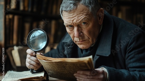 man, old, elderly, senior, antique, library, book, book, reading, research, history, historical, document, paper, magnifying, glasses, vintage, aged, mature, serious, intense, investigation, study, learning, cognition, wisdom, archive, researcher, scholar, prof, detective, mystery, clue, evidence, sharpened, detail, inspecting, examining, analysing, concentrating, pensive, thoughtful, curious, exploration, discovery, past, heritage, culture