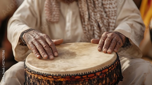 drum, man, elderly, playing, desert, culture, music, hand, traditional, percussion, instrument, arabic, africa, rythm, beat, song, festival, celebration, performance, musician, older, aged, senior, percussionist, artist, skill, talent, heritage, tradition, cultural, event, show, concert