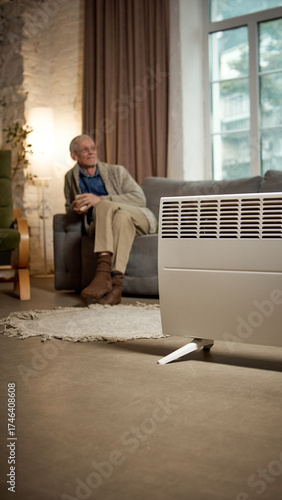 elderly, man, heater, warmth, sofa, comfort, home, heating, electric, energy, relaxation, senior, cosy, health, safety, winter, domestic, lifestyle, care, well-being, utility, temperature, calm, rest, environment, light, house, power, interior, pensioner, peaceful, sustainable, electricity, protection, serenity, living, gentle, modern, soft, security, residence, human, support, health care