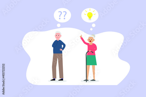 Elderly woman give an idea to confused husband 2D flat vector concept for banner, website, illustration, landing page, flyer, etc.