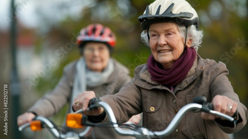 Elderly Women Cycling Outdoors in Autumn