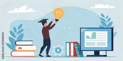e-learning, graduate, certificate, program, concept, online, education, photo, still life, element, prop, aesthetic, visual, appealing, digital, innovation, modern, design, unique, artistic, presentation, learning, cognition, skill, convenience, accessibility, empowerment, growth, progress, future, academic, certification, training