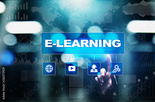 E-learning, Online education, internet studying. Business, technology and personal development concept on virtual screen.