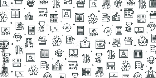 illustration, pattern, background, education, online, cognition, seamless, university, e-learning, icon, technology, school, vector, design, isolated, symbol, web, study, graduation, concept, training, computer, information, student, signs, digital, learning, business, cap, cyberspace, hat, laptop, diploma, book, graphic, academic, college, flat, communication, mobile, learn, tutorial, success, achievement, display, teaching, network, graduate, screen, wallpaper