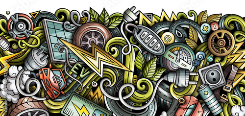 electrical, transportation, charge, automotive, battery, charger, ecology, vehicle, electricity, hybrid, leaf, nature, plug, cartoon, doodle, design, illustration, funny, border, decorative, background, banner