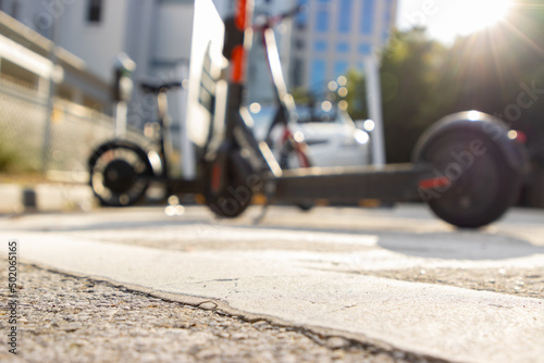scooter, city, electric, ride, share, urban, downtown, transport, sidewalk, commute, street, crosswalk, cross, traffic, new, program, company, parking, park, speed, fast, convenience